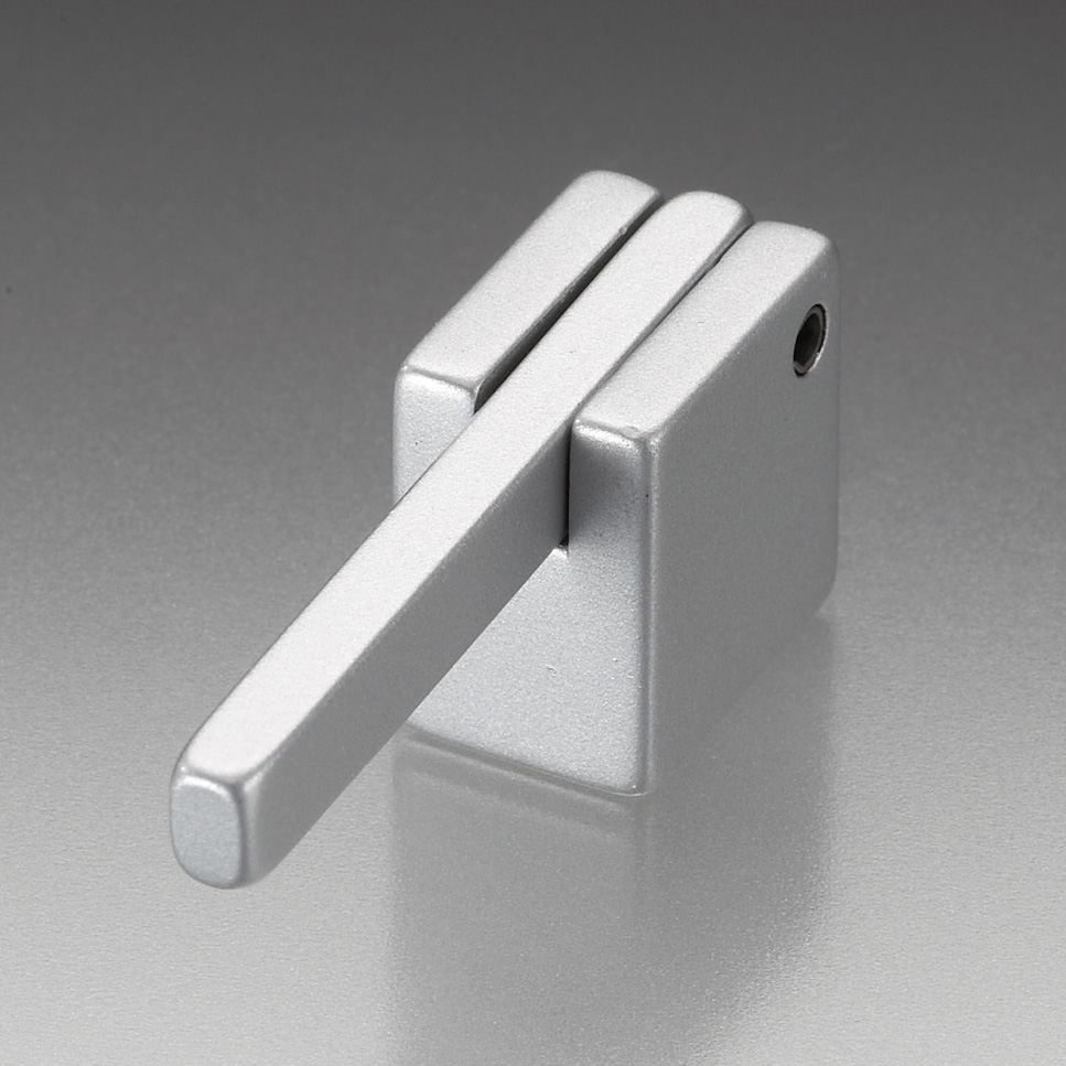 棒型のつまみを前後に動かせる金属製ブラリ。
